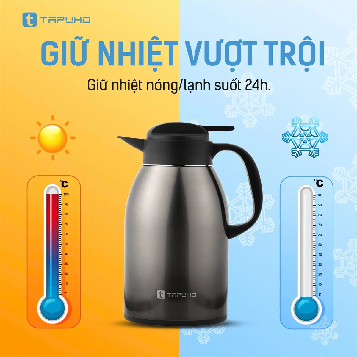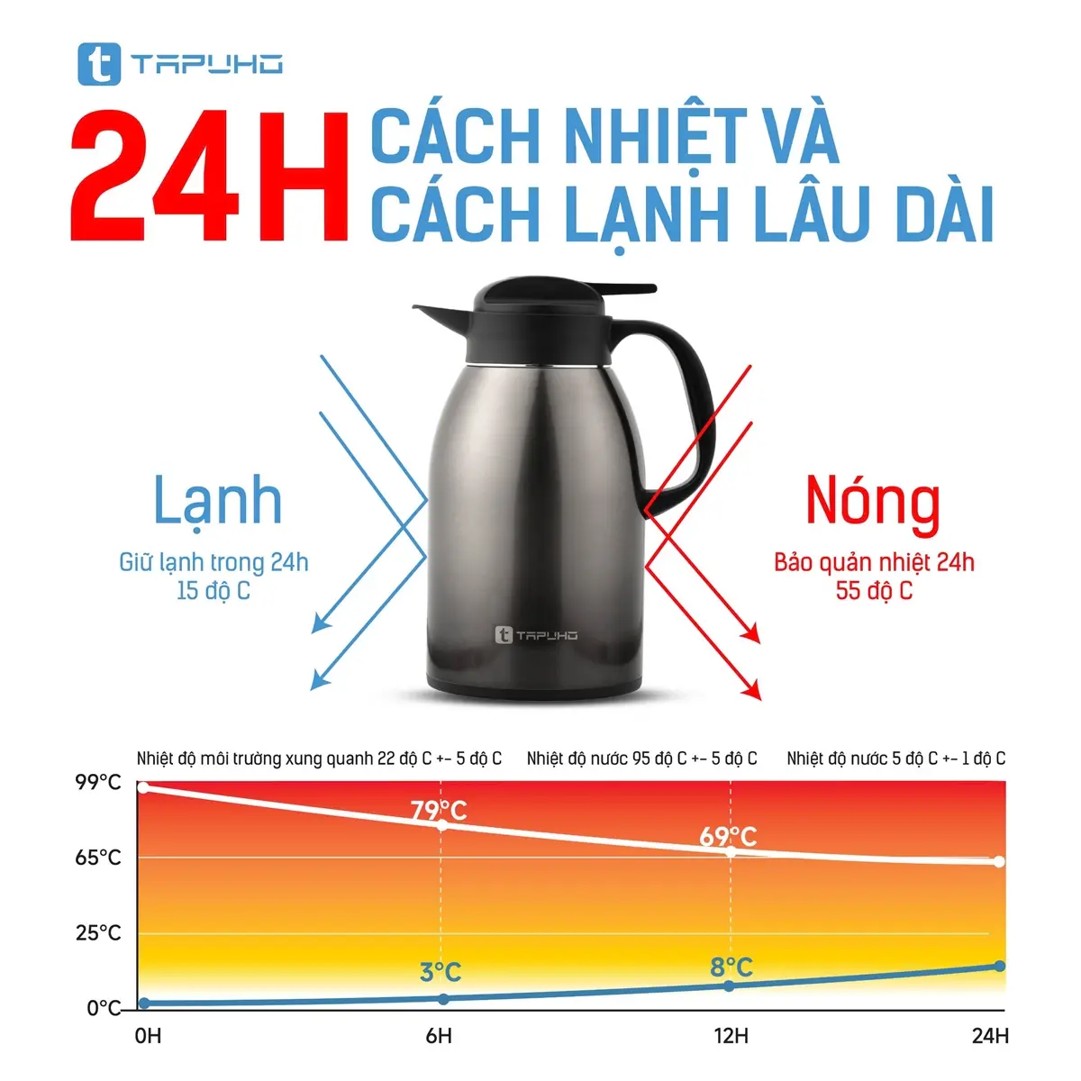 - Để có thể đạt được hiệu quả tốt nhất trong việc giữ nhiệt, trước khi sử dụng bạn nên cho một chút nước nóng (hoặc nước lạnh) vào trong bình trước để làm nóng (lạnh) trong khoảng 2 phút.